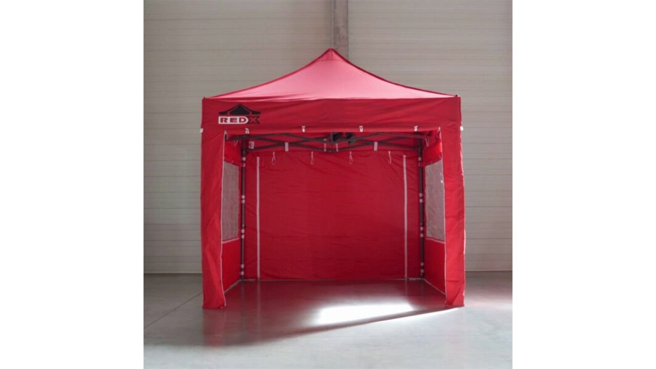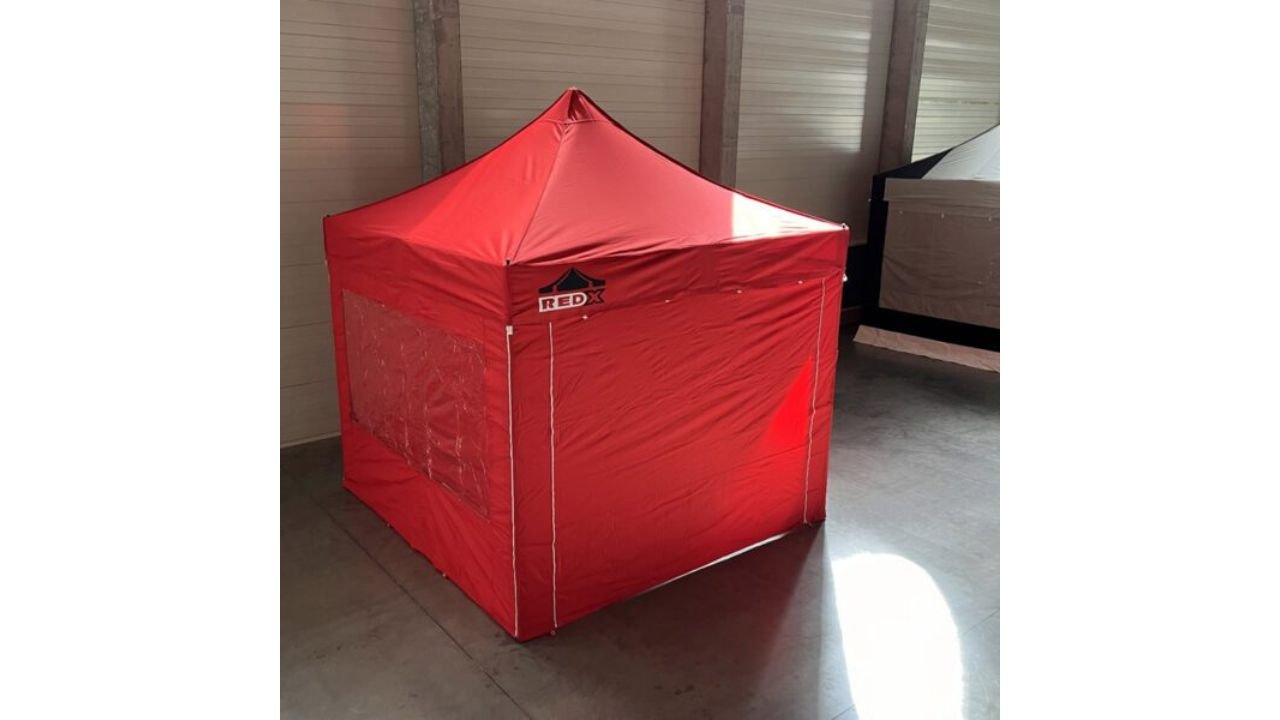 - Optional 4 separate sidewalls (also made of PVC-coated POLYESTER and 100 percent waterproof and reduced flammability) – set contains 2 windows with blinds and 2 zipper-closed doors