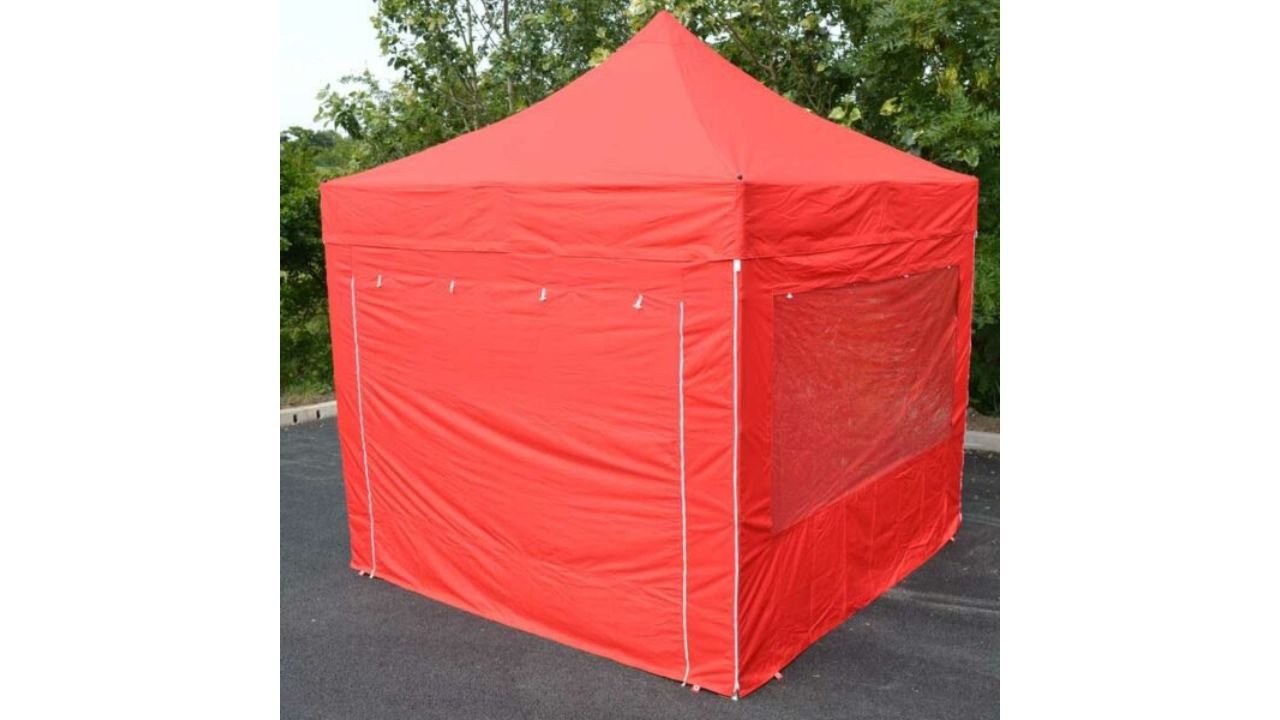 • Optional 4 separate sidewalls (also made of PVC-coated POLYESTER and 100 percent waterproof and reduced flammability) – set contains 2 windows with blinds and 2 zipper-closed doors