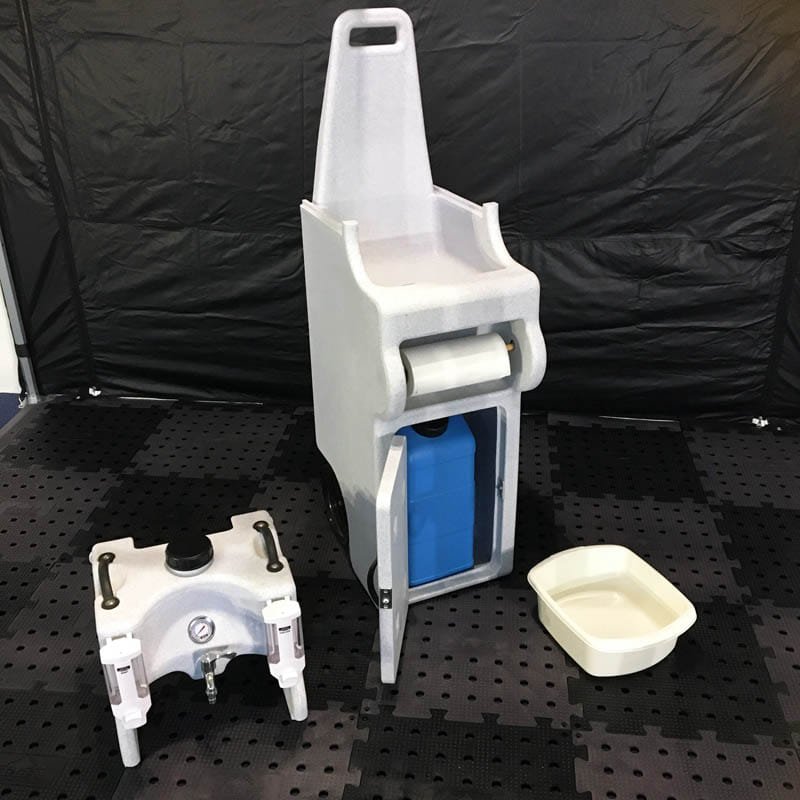 This mobile washing station does not require any external connections, so it can be set up quickly and easily in just a few seconds. The station is made of durable HDPE plastic, a material that is extremely durable, stable, yet lightweight, making it easy to transport. The rubber wheels on the bottom of the station make it easy and quick to move it to the right location.