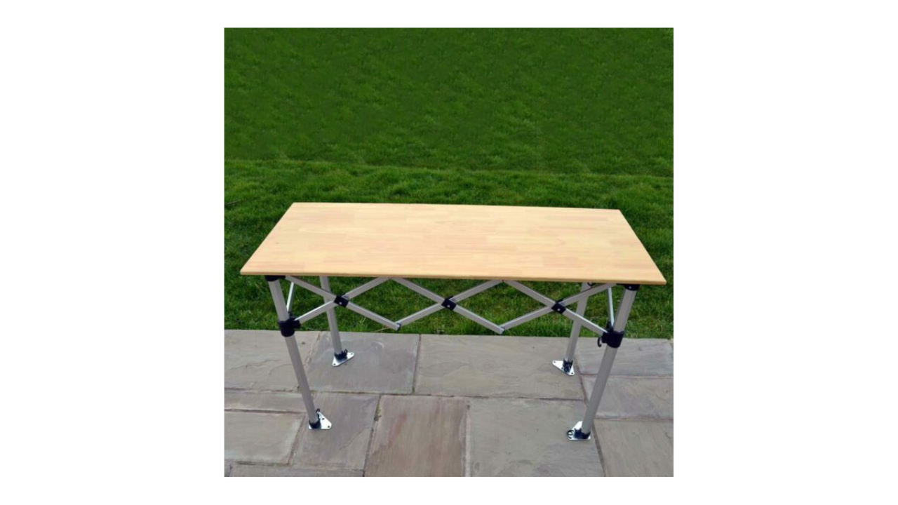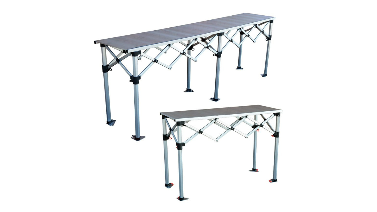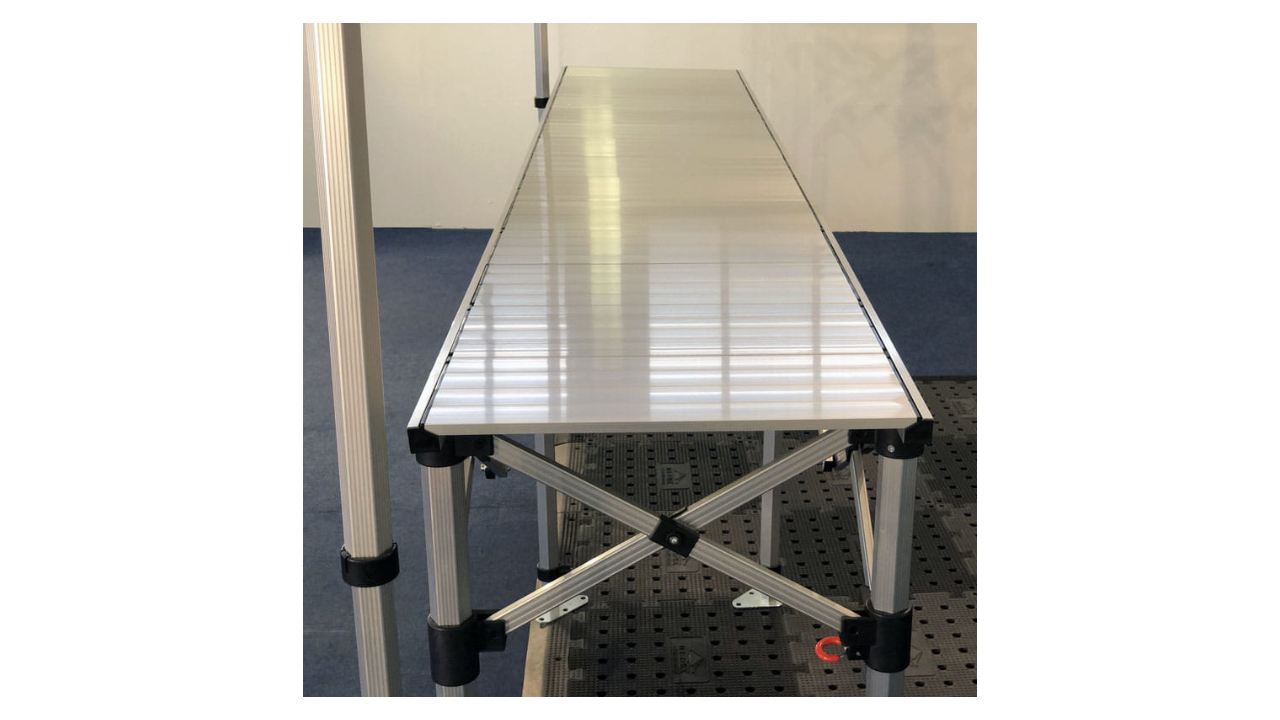 Šis profesionalus prekystalis pasižymi stabilumu ir patvarumu, todėl puikiai tinka mugėms, automobilių sporto renginiams, maisto furgonams bei kitoms lauko prekybos vietoms. Jį galima naudoti kaip savarankišką stalą arba pritvirtinti prie vieno iš mūsų sulankstomų paviljonų – komplekte esančios cinkuotos metalinės rankenos leidžia sukurti stabilią ir saugią darbo zoną.