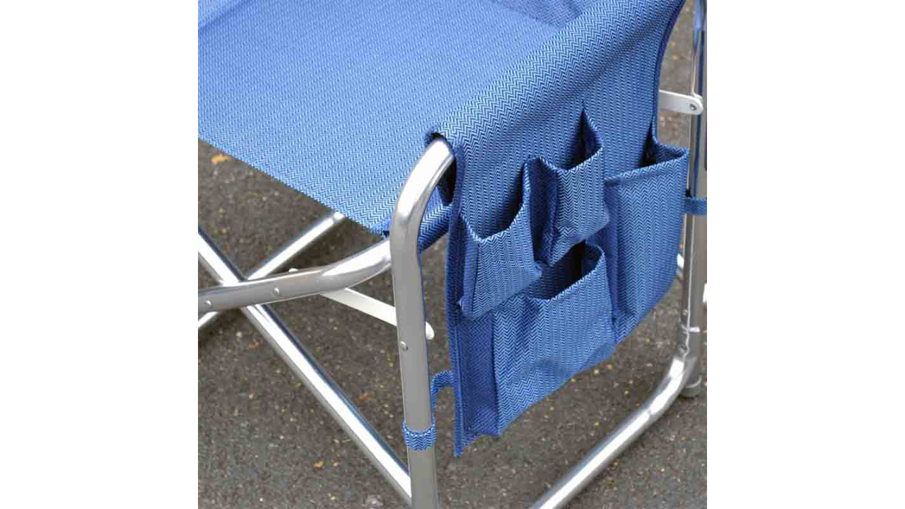 Ši sulankstoma režisieriaus kėdė pasižymi tvirta ir patvaria aliuminio konstrukcija bei aukštos kokybės audiniu sėdimai vietai ir atlošui. Kėdė taip pat turi šonines kišenes smulkiems daiktams laikyti bei patogų sulankstomą šoninį stalelį.